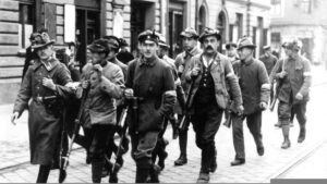 В Баварии, хотя против наступающего радикализма выступали и родственники берлинских правителей, они полностью перешли в оборону, а революционное движение развивалось бурными темпами, подталкивая к важным решениям в быстром чередовании удачных и неудачных событий, После убийства Эйснера революционное движение приняло самые далеко идущие решения по социалистическому воплощению, пережило войну с белогвардейскими ландскнехтами, спешно собранными со всех концов Германии, сражалось за свои идеалы с героической решимостью и страшными жертвами, и в конце концов утонуло в океане крови, убийств, грабежей, осквернений, кощунств и судебной мести.